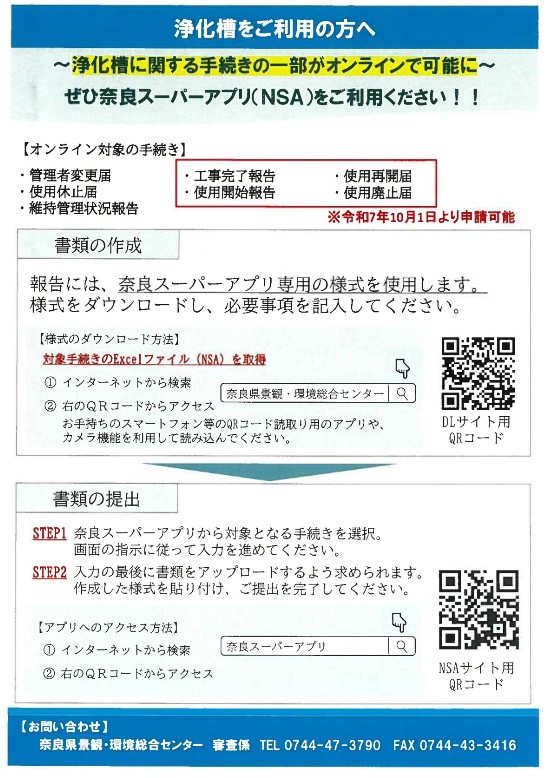 奈良県景観・環境総合センター管轄の浄化槽法に基づく手続きの電子申請対象が追加されました。